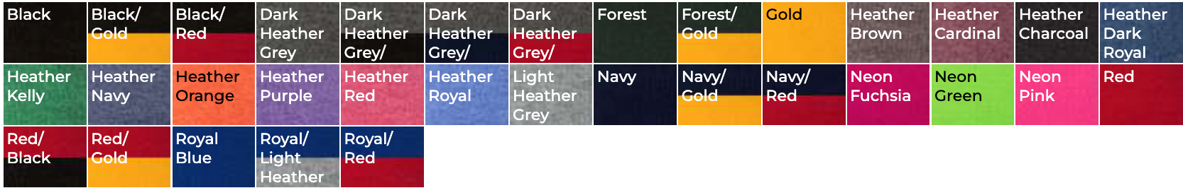 - Other Heather colors are 50/50 acrylic/polyester